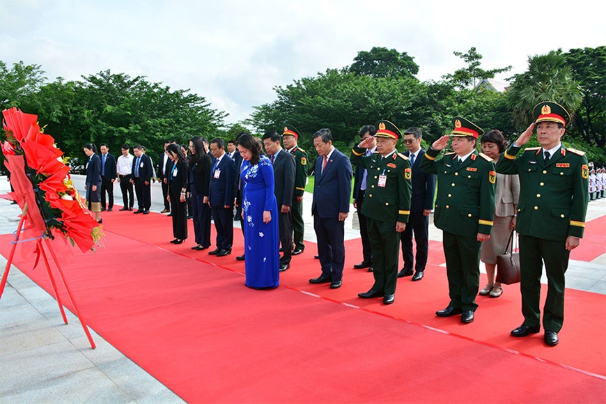 | Phó chủ tịch nước Võ Thị Ánh Xuân và các đại biểu viếng các anh hùng liệt sĩ. |