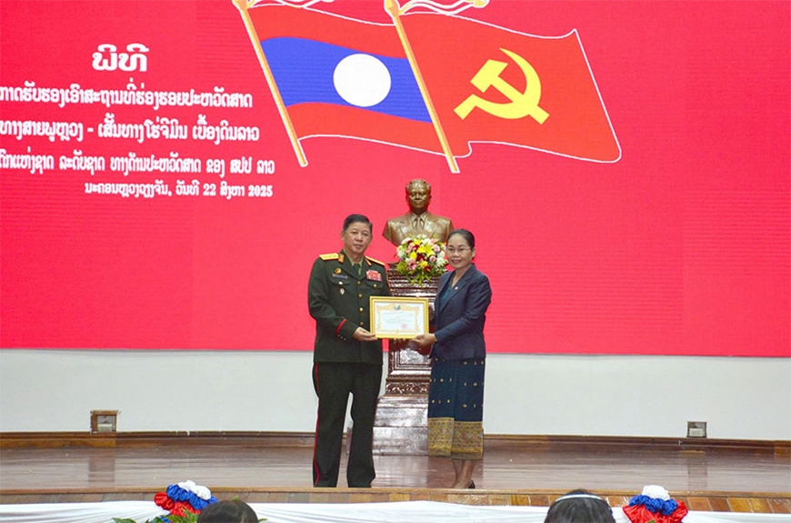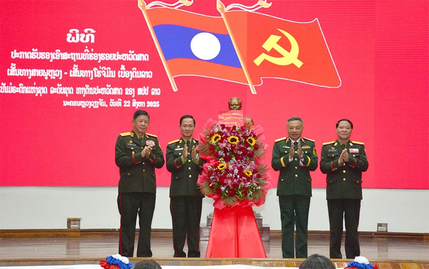 Tại buổi lễ, Thứ trưởng Bộ Thông tin, Văn hóa và Du lịch (Lào) đã trao Bằng công nhận: Đường Trường Sơn - đường Hồ Chí Minh trên đất nước Lào là di tích lịch sử cấp quốc gia của Nước Cộng hòa dân chủ nhân dân Lào cho Thứ trưởng Bộ Quốc phòng Lào.