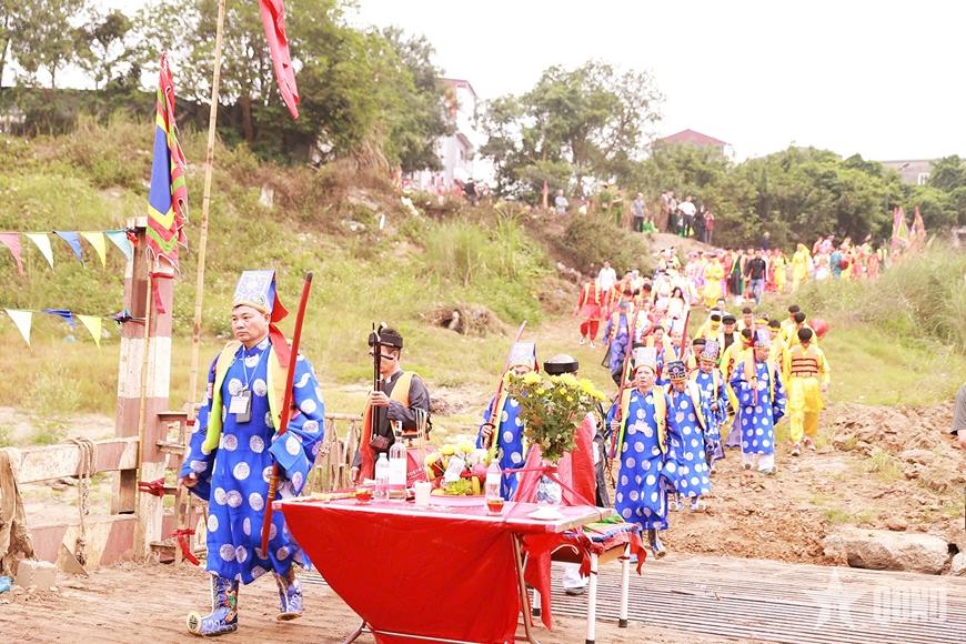 Lễ rước nước truyền thống từ sông Hồng về đình làng được tiến hành trang trọng.