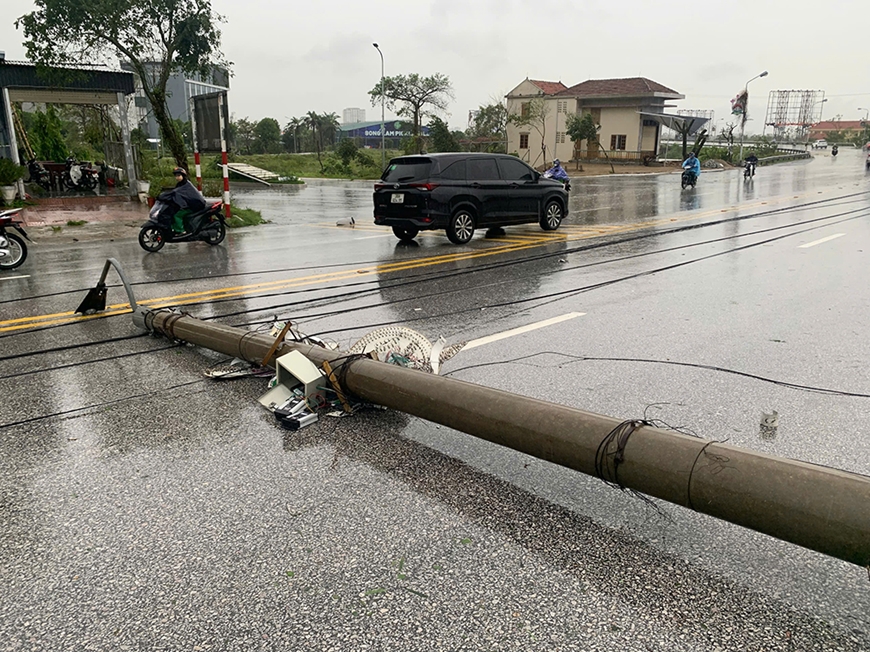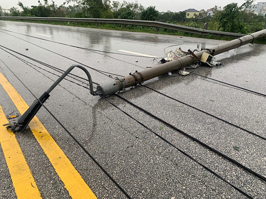 | Nhiều cột điện gãy đổ. |