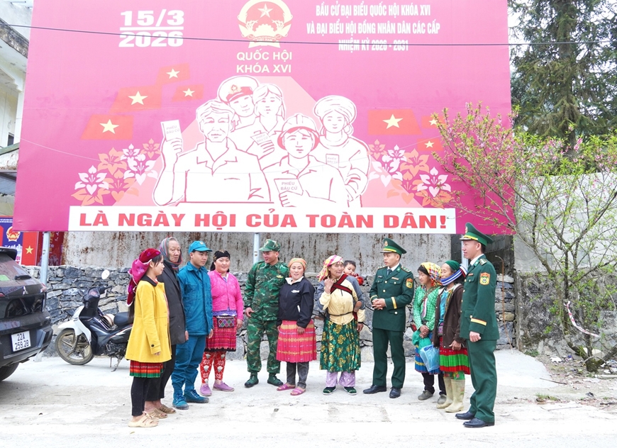 Song song với đó, cán bộ, chiến sĩ còn lồng ghép nội dung tuyên truyền bầu cử trong quá trình thực hiện công tác dân vận. Các tổ công tác trực tiếp đến từng hộ gia đình trao đổi với người dân về ý nghĩa của cuộc bầu cử, hướng dẫn nắm chắc các quy định khi tham gia bỏ phiếu; đồng thời phối hợp với địa phương tổ chức tuyên truyền tại nhà văn hóa thôn bản trong các buổi sinh hoạt cộng đồng.