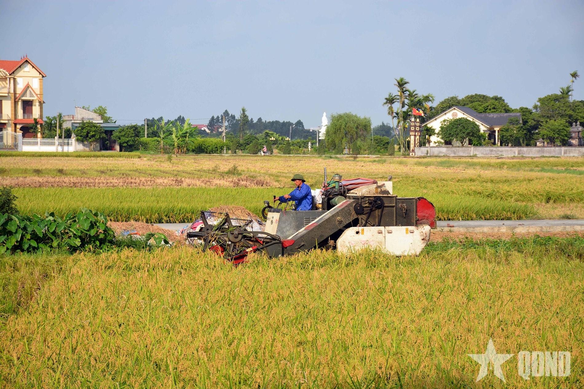 | Nông dân thành phố Hải Phòng thu hoạch lúa. Ảnh: NGUYỄN KIỂM |