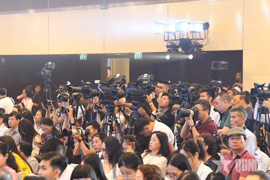 Các nhà báo tác nghiệp tại Hội Báo toàn quốc 2025. Ảnh: TUẤN HUY |