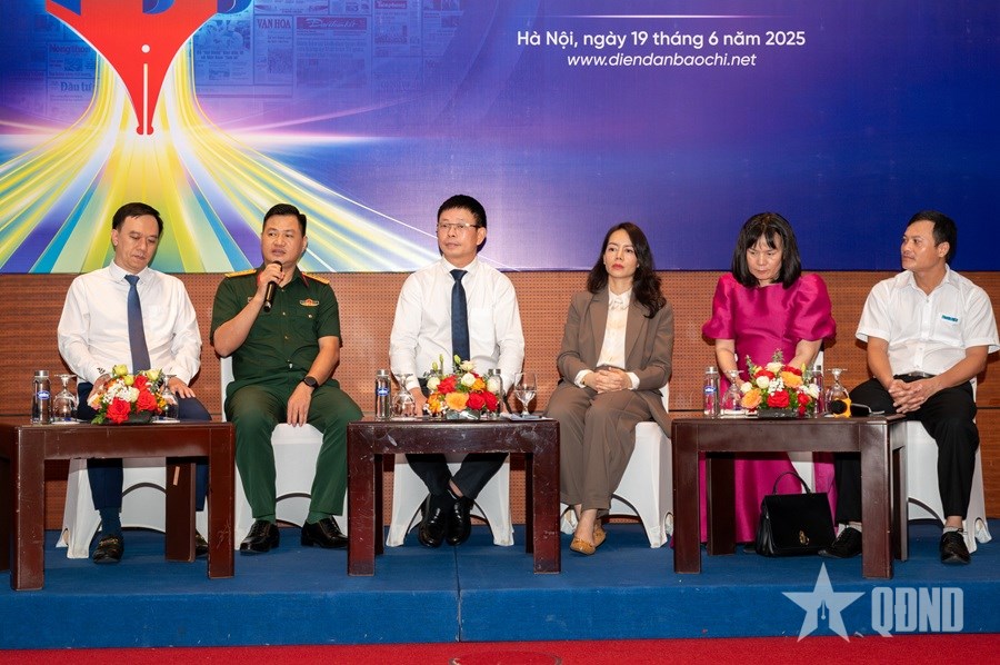 Các diễn giả tại phiên thảo luận thứ ba Diễn đàn Báo chí toàn quốc 2025. Ảnh: TRUNG THÀNH |