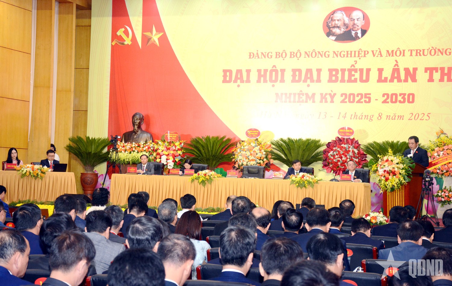 Sáng 14-8, tại Hà Nội, Đảng bộ Bộ Nông nghiệp và Môi trường tổ chức Đại hội đại biểu lần thứ I, nhiệm kỳ 2025-2030 (phiên chính thức). Đồng chí Trần Hồng Hà, Ủy viên Trung ương Đảng, Ủy viên Ban Thường vụ Đảng ủy Chính phủ, Phó thủ tướng Chính phủ dự, phát biểu chỉ đạo đại hội.