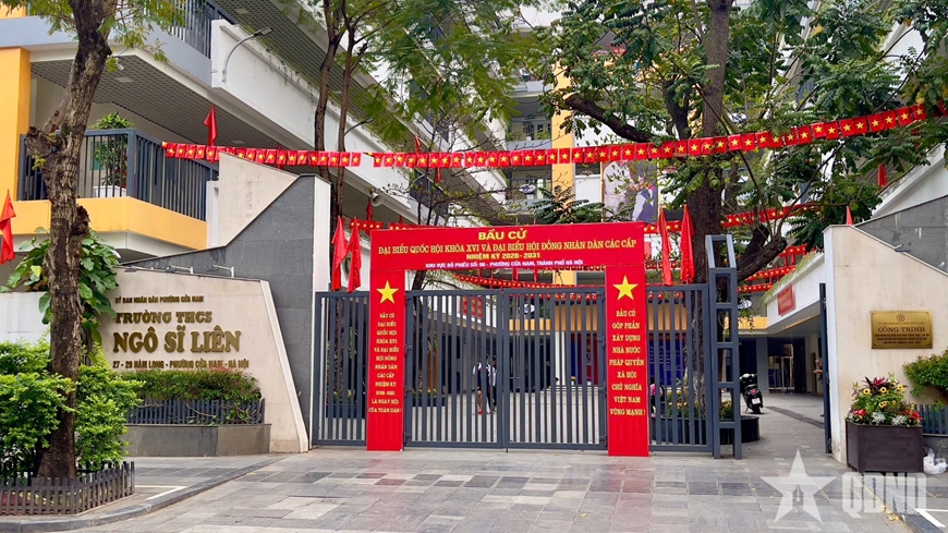 Nhiều trường học được lựa chọn làm các điểm bỏ phiếu trang hoàng đỏ rực cờ hoa, băng rôn, áp phích tuyên truyền về cuộc bầu cử. |