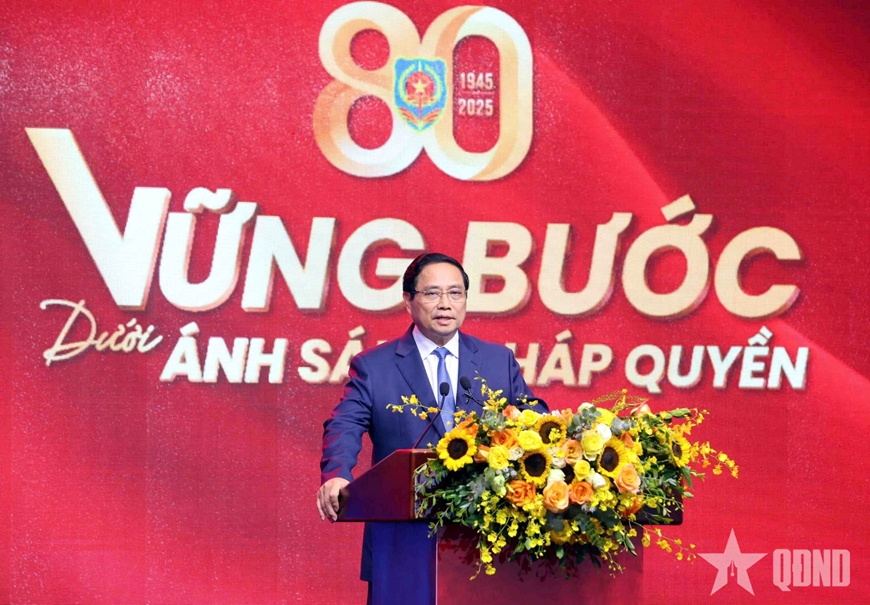 Thủ tướng Chính phủ Phạm Minh Chính phát biểu chỉ đạo tại Lễ kỷ niệm 80 năm Ngày truyền thống ngành Tư pháp Việt Nam. |