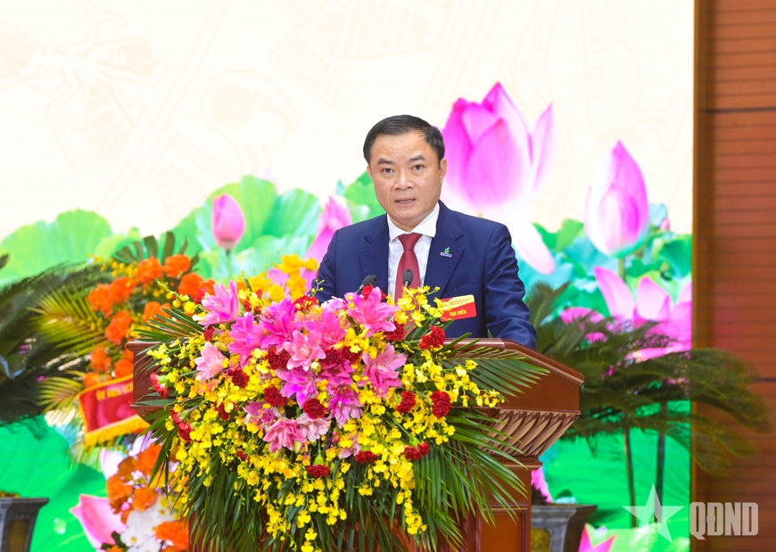 | Đồng chí Lê Ngọc Sơn trình bày Báo cáo Chính trị. |