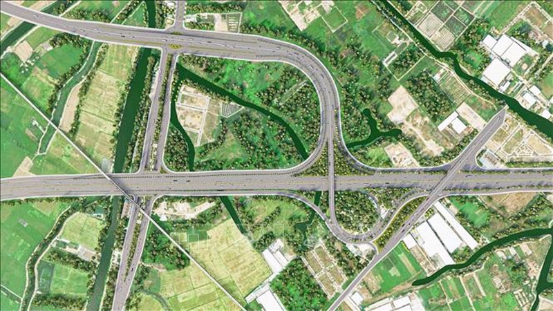 | Sáng 19-8-2025, tại Thành phố Hồ Chí Minh, UBND Thành phố tổ chức khởi công gói thầu rà phá bom mìn và di dời hạ tầng kỹ thuật dự án xây dựng đường cao tốc Thành phố Hồ Chí Minh - Mộc Bài (giai đoạn 1). Trong ảnh: Phối cảnh nút giao cao tốc TP Hồ Chí Minh - Mộc Bài và Vành đai 3 TP Hồ Chí Minh. Ảnh: TTXVN |