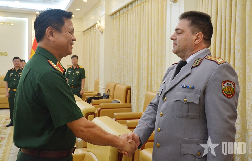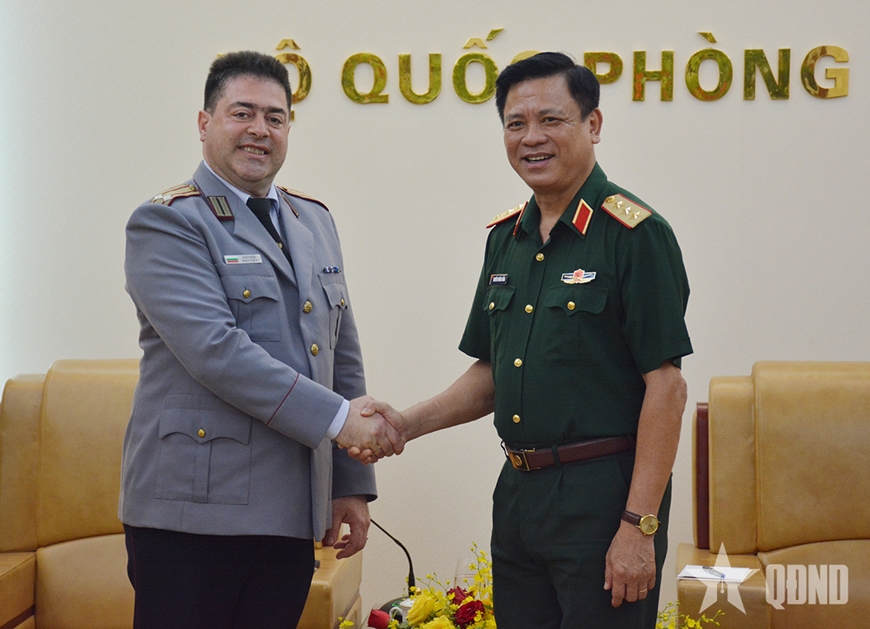 | Thượng tướng Nguyễn Trường Thắng tiếp Trung tá Georgi Veselinov Kalchev, Tùy viên Quốc phòng Bulgaria tại Việt Nam. |