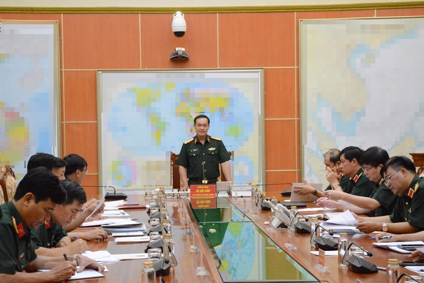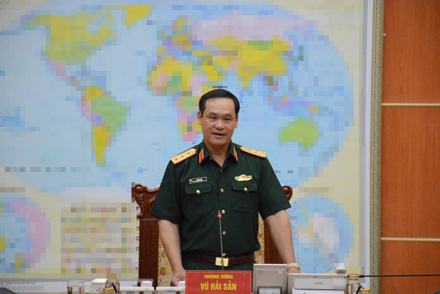 | Thượng tướng Vũ Hải Sản, Ủy viên Trung ương Đảng, Thứ trưởng Bộ Quốc phòng, Trưởng ban Chỉ đạo chủ trì hội nghị. |
