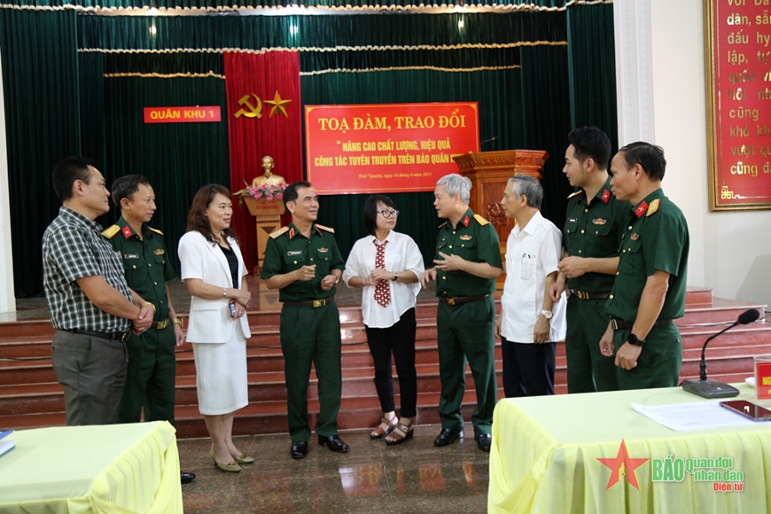 Tại hội nghị, các chuyên gia, nhà báo nhiều kinh nghiệm, lãnh đạo các cơ quan báo chí Trung ương, Quân đội và tỉnh Thái Nguyên, đại biểu các cơ quan, đơn vị LLVT Quân khu đã trao đổi và chia sẻ những kiến thức, kinh nghiệm hữu ích, đề xuất giải pháp thiết thực nhằm đổi mới nâng cao chất lượng, hiệu quả tuyên truyền trên Báo Quân khu 1, tập trung vào các vấn đề như: Đổi mới cả về nội dung, hình thức, phương pháp thể hiện, tác phẩm báo chí trên Báo Quân khu 1, bao gồm báo in, báo điện tử và chương trình Truyền hình Quân khu 1; nghiên cứu đổi mới quy trình sáng tạo tác phẩm báo chí và quy trình xuất bản báo chí của tòa soạn trong xu thế báo chí truyền thông đa phương tiện và chuyển đổi số, bảo đảm đăng tải kịp thời, nhanh chóng các tin tức sự kiện có tính thời sự, các vấn đề đang được dư luận quan tâm. Đổi mới cách trình bày báo in, giao diện báo điện tử; tăng cường sử dụng các video clip, audio, các hình thức thể hiện mới trên báo điện tử như longform, infographic, emagazine...; đẩy mạnh ứng dụng mạng xã hội như facebook, zalo, youtube để thu hút bạn đọc, tăng khả năng lan tỏa của tin, bài, phóng sự truyền hình, qua đó nâng cao hiệu quả tuyên truyền.