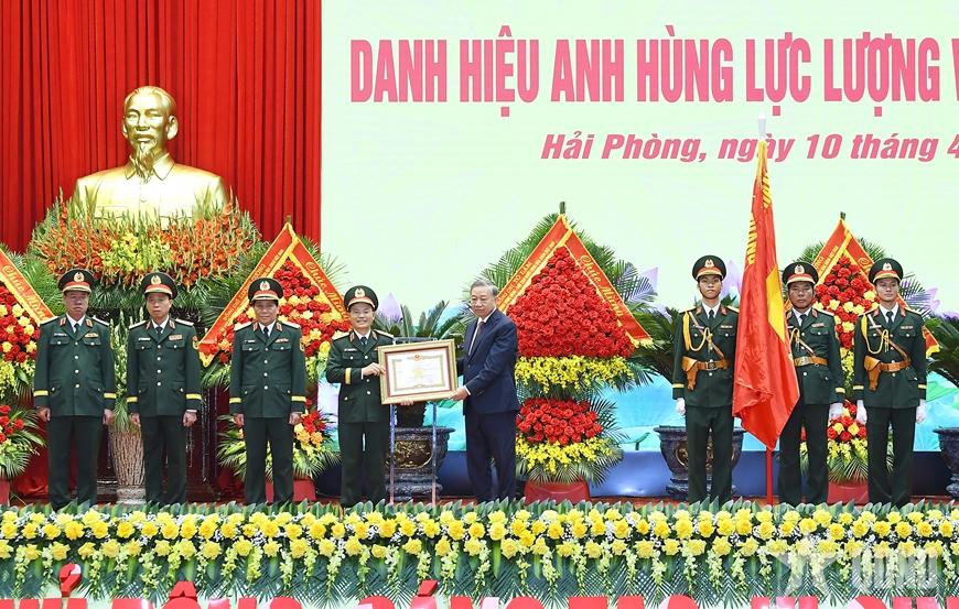 Tổng Bí thư, Chủ tịch nước Tô Lâm, Bí thư Quân ủy Trung ương trao danh hiệu Anh hùng Lực lượng vũ trang nhân dân tặng Quân khu 3. |