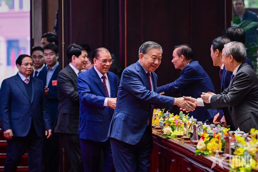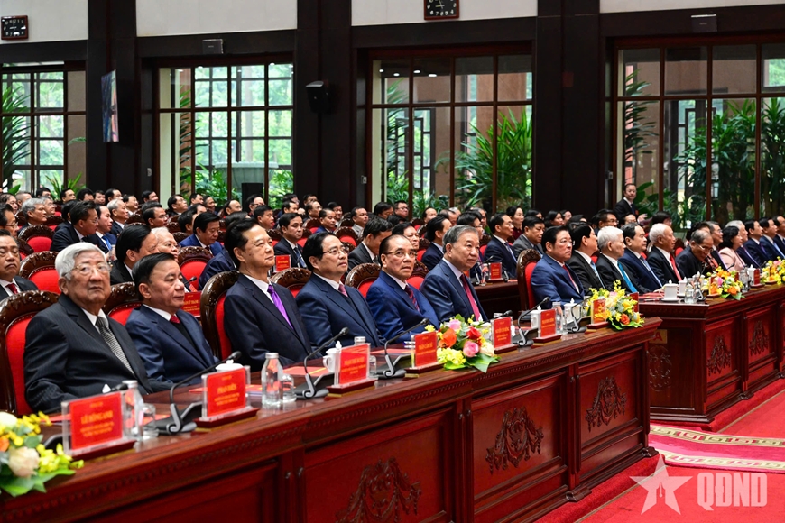 Tổng Bí thư Tô Lâm và các đồng chí lãnh đạo, nguyên lãnh đạo Đảng, Nhà nước dự lễ kỷ niệm.