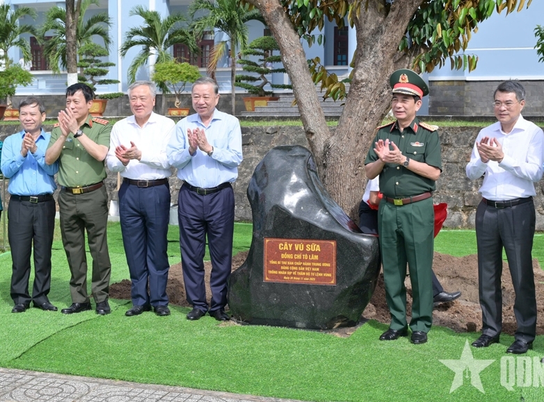 | Tổng Bí thư Tô Lâm trồng cây lưu niệm tại Bộ tư lệnh Vùng 5 Hải quân. |
