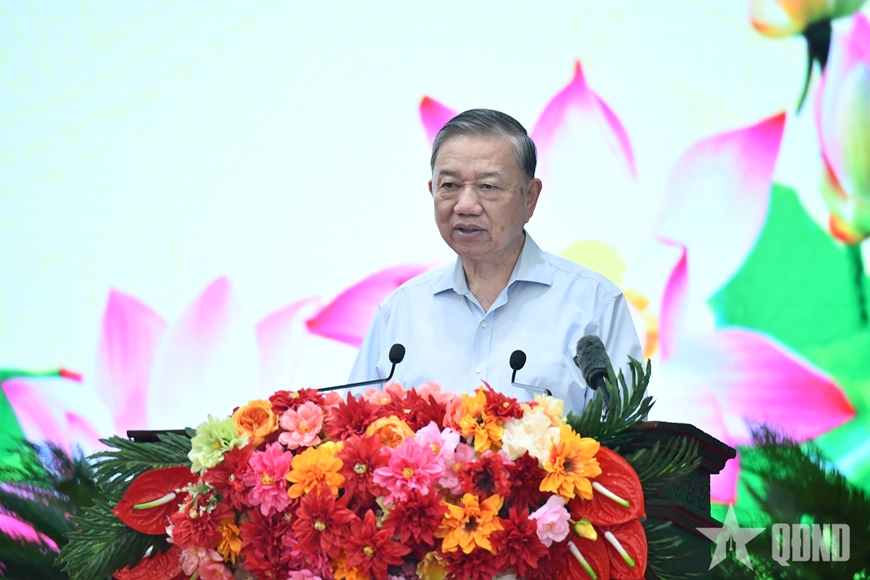 | Tổng Bí thư Tô Lâm phát biểu chỉ đạo tại buổi làm việc với Bộ tư lệnh Vùng 5 Hải quân. |