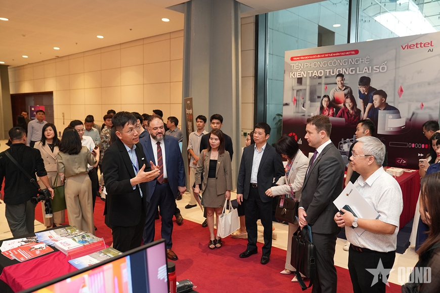 | Các đại biểu, khách hàng tham quan triển lãm tại Ngày hội Trí tuệ nhân tạo (AI4VN 2025). |