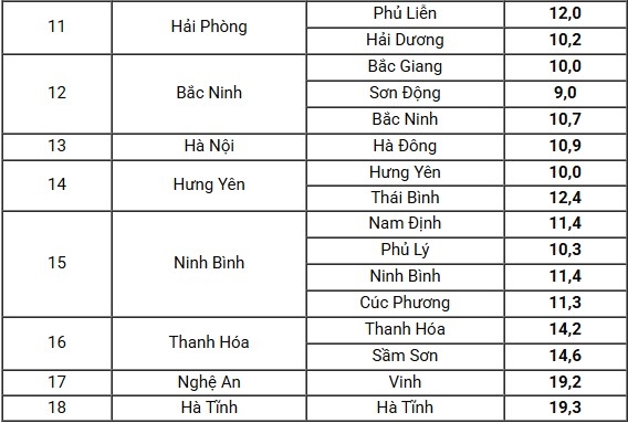 Nhiệt độ quan trắc cụ thể sáng nay như sau: