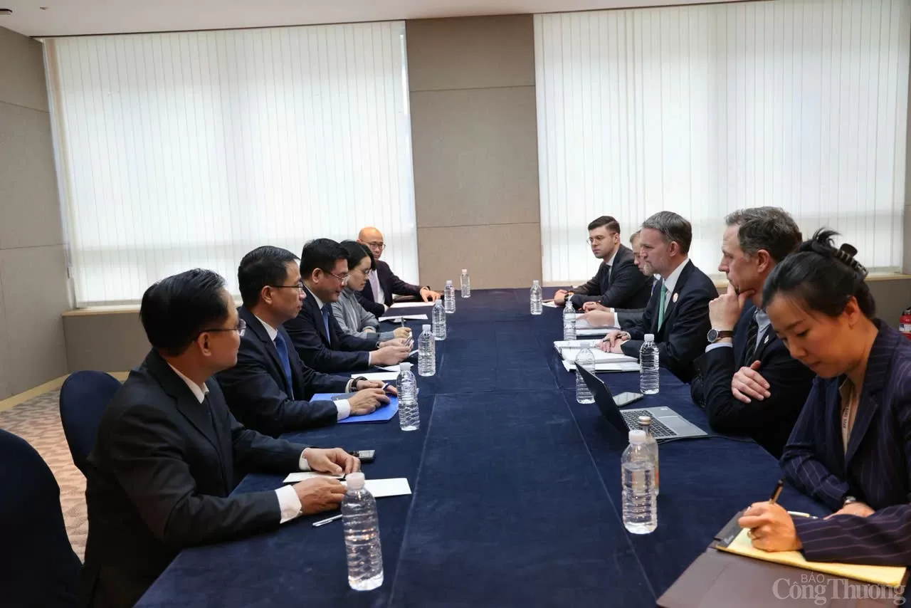 Trước đó, trong chương trình khai mạc Hội nghị Bộ trưởng Thương mại APEC 2025 diễn ra tại Jeju, Hàn Quốc hôm 15/5, vị trí ngồi của Bộ trưởng Bộ Công Thương Nguyễn Hồng Diên - Trưởng Đoàn công tác Việt Nam đã được xếp cạnh Trưởng Đại diện Thương mại Hoa Kỳ - ông Jamieson Greer. Đặc biệt, trước khi sự kiện khai mạc Hội nghị Bộ trưởng Thương mại APEC 2025 diễn ra, Bộ trưởng Bộ Công Thương Nguyễn Hồng Diên đã có cuộc trao đổi nhanh với Trưởng Đại diện Thương mại Hoa Kỳ - ông Jamieson Greer.