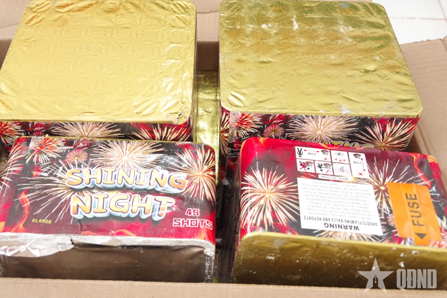 Qua đấu tranh, 2 đối tượng khai nhận vận chuyển 36 hộp pháo hoa nổ, tổng trọng lượng 64,2 g, vào địa bàn nội địa tiêu thụ.