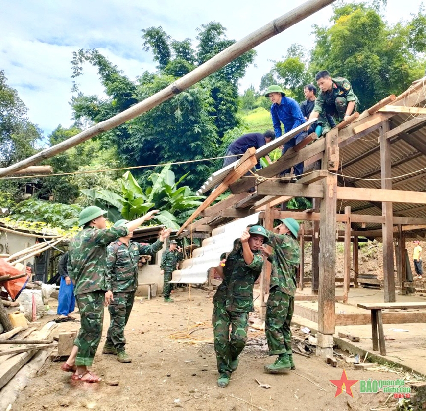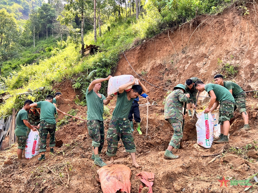 Chiến sĩ Sư đoàn 316, Quân khu 2 giúp đỡ nhân dân huyện Mù Cang Chải khắc phục hậu quả thiên tai. |