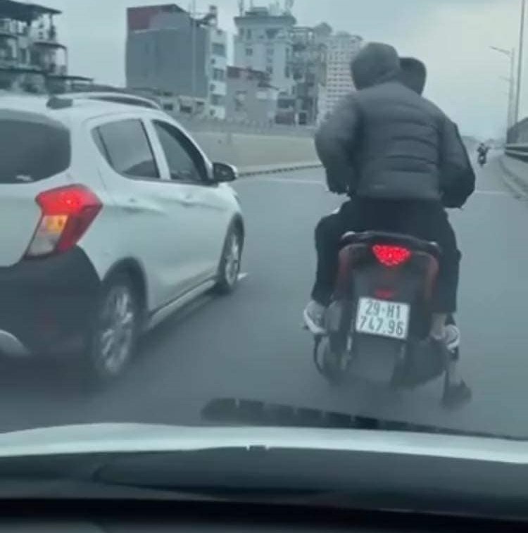 Theo lời kể của người phụ nữ trên, hai thanh niên này liên tục đánh võng, chuyển làn trên đường, bất chấp các phương tiện ô tô đang đi phía sau. Đây cũng là tuyến đường chỉ dành riêng cho xe ô tô nhưng hai thanh niên đã cố tình vi phạm, thách thức pháp luật.