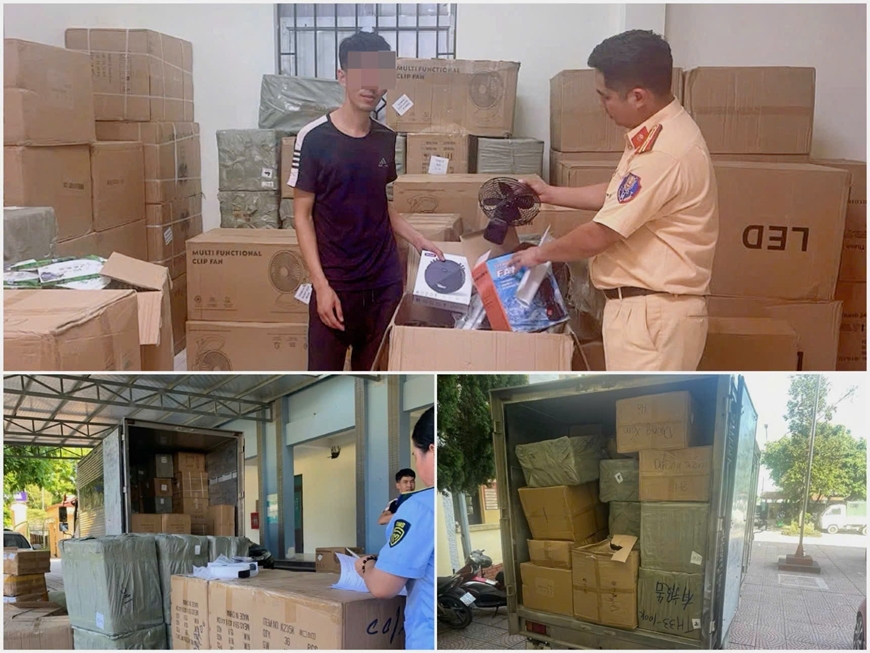 Quá trình kiểm tra, lực lượng chức năng xác định lái xe là P.Q.C (sinh năm 1989; Hộ khẩu thường trú tại xã Vật Lại, Hà Nội) đang vận chuyển trong thùng xe nhiều thùng carton có nhãn chữ nước ngoài. Bên trong chứa gần 2.000 sản phẩm đồ điện gia dụng, gồm quạt tích điện và sạc điện các loại. Tại thời điểm kiểm tra, lái xe không xuất trình được giấy tờ chứng minh nguồn gốc, xuất xứ số hàng hóa nêu trên.