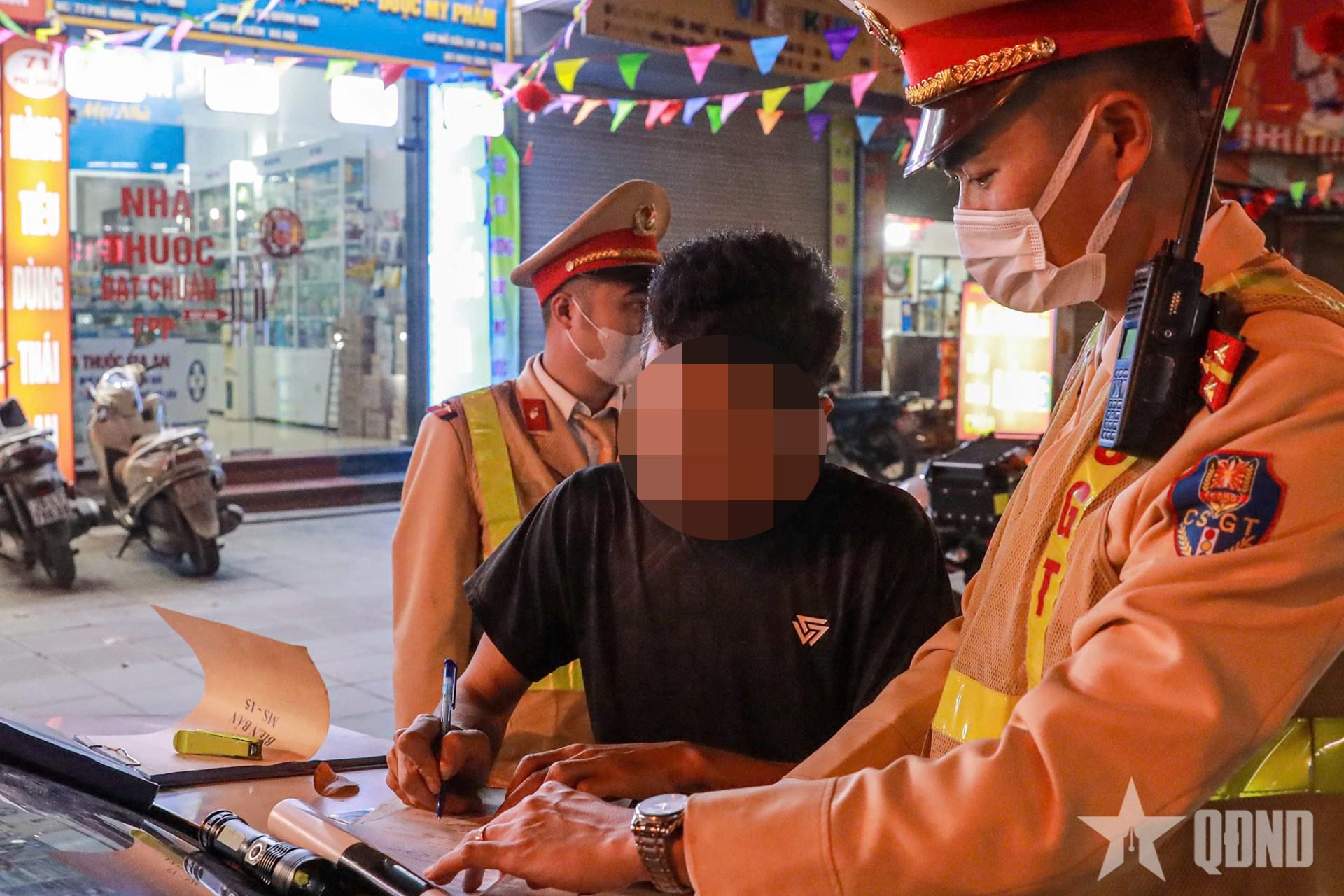 Lực lượng CSGT dừng và lập biên bản các trường hợp vi phạm. |