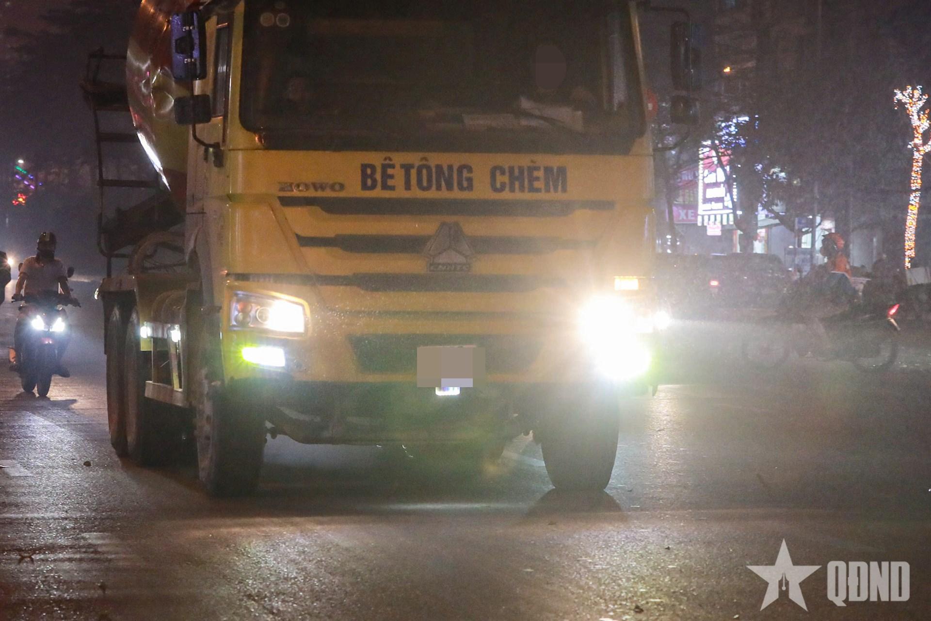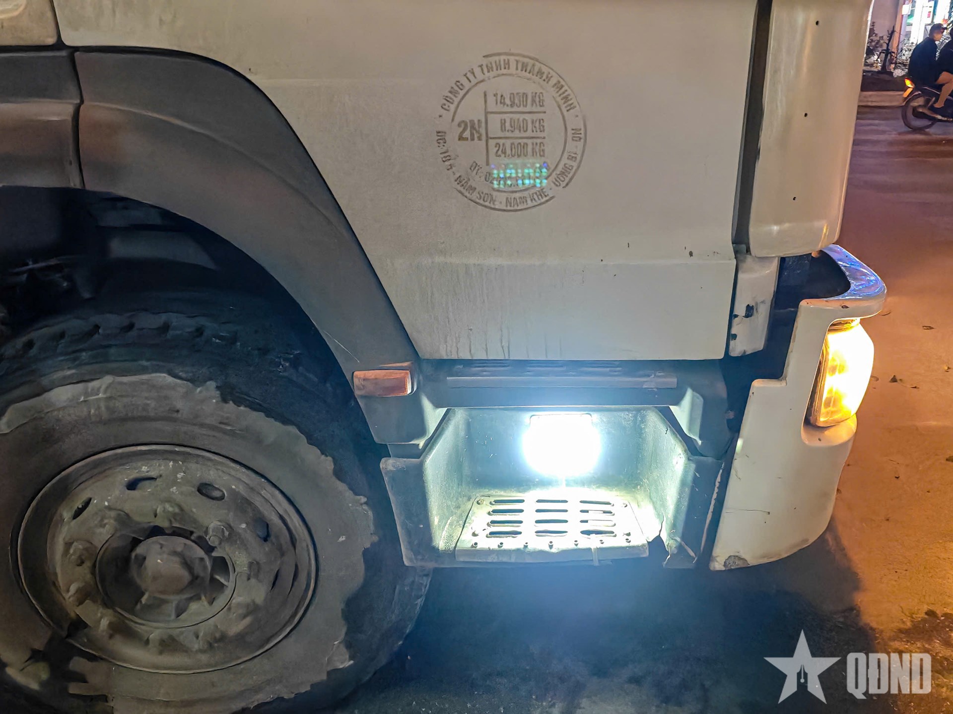 Không chỉ lắp đèn siêu sáng ở phía đầu xe, trường hợp của ô tô bồn chở bê tông còn lắp đèn rọi xung quanh phương tiện. |