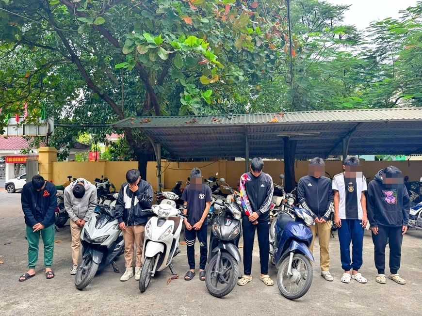 Các phương tiện và 8 thanh niên vi phạm tại cơ quan công an. |