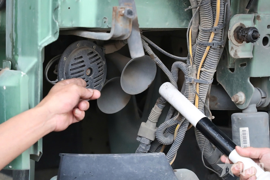 Bên cạnh việc kiểm tra vi phạm về tải trọng, "cơi nới" thành thùng, tổ công tác còn xử lý các trường hợp lắp thêm còi hơi, "độ" đèn, gây mất an toàn giao thông. |