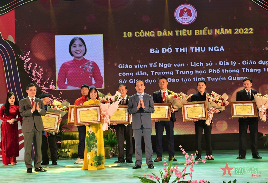 | Cô Nga nhận danh hiệu Công dân tiêu biểu tỉnh Tuyên Quang năm 2022. |