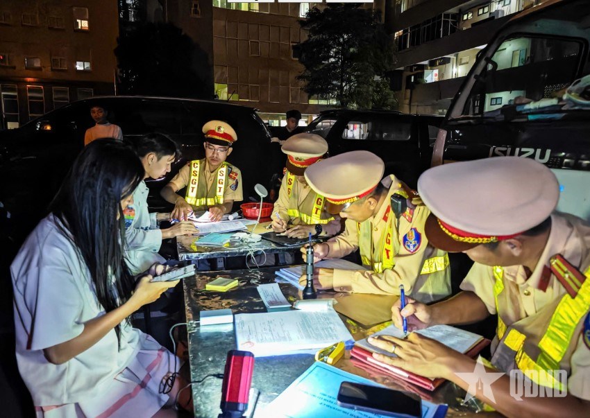 | Đội Cảnh sát giao thông số 1, Phòng Cảnh sát giao thông, Công an TP Hà Nội kiểm tra, kiểm soát thanh, thiếu niên vi phạm trật tự, an toàn giao thông. Ảnh: NGUYỄN HUYỀN |