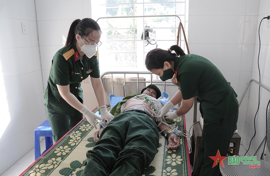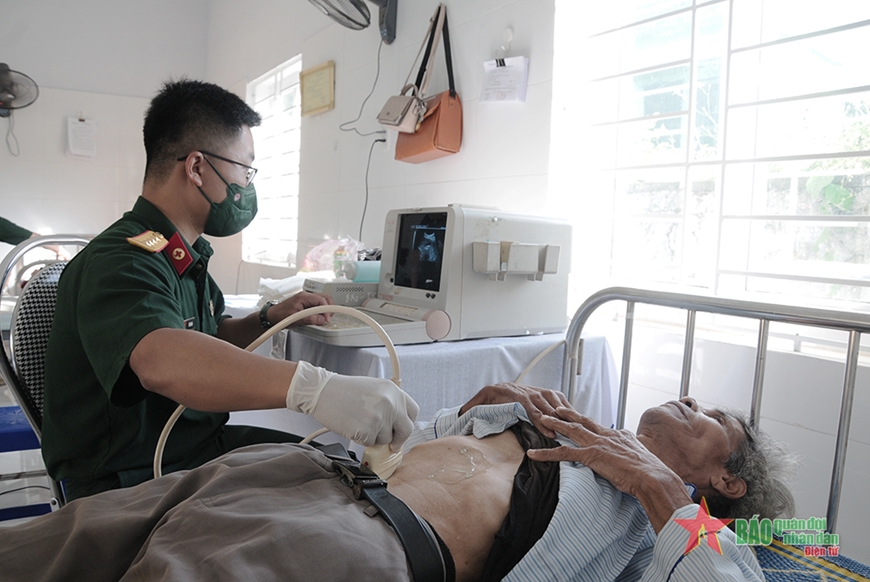 Các y, bác sĩ kiểm tra tim mạch cho người dân. Trong số những người đi khám, có nhiều cựu chiến binh. |