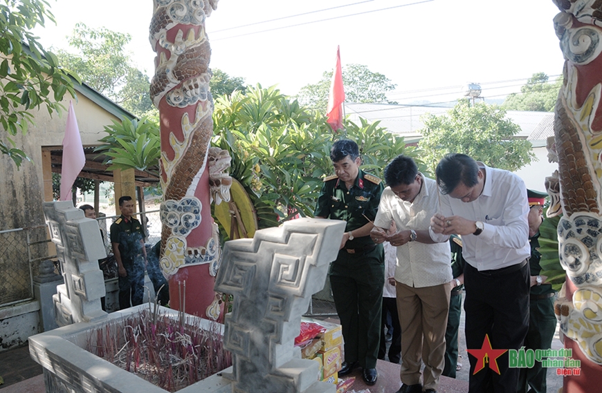 Đoàn công tác dâng hương tại Nhà tưởng niệm liệt sĩ xã Vĩnh Ô sáng 26-7. |