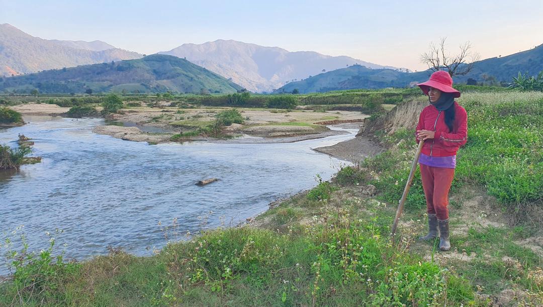 | Hơn 1 ha đất màu của gia đình bà H Oăn Byă ở buôn Chàm A, xã Cư Drăm bị xói lở giờ chỉ còn được vài sào. |